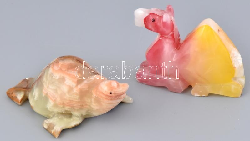 Beschreibung: 2 db figurális ásvány (teve, teknős)