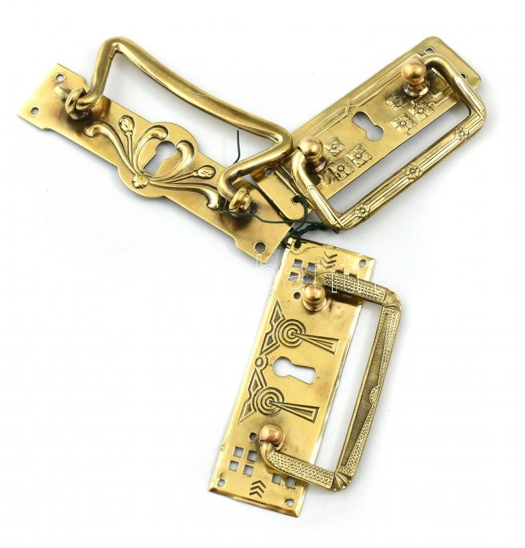 Beschreibung: 3 db szecessziós réz fiókhúzó klf mintákkal kb 12 cm