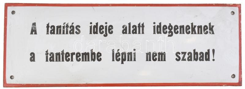 Beschreibung: A tanítás ideje alatt idegeneknek a tanterembe lépni nem szabad! zománc tábla sérült 14x40 cm