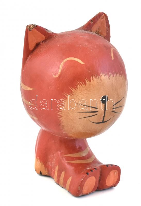 Beschreibung: Fa macska figura. Festett, kopott 11,5 cm