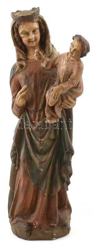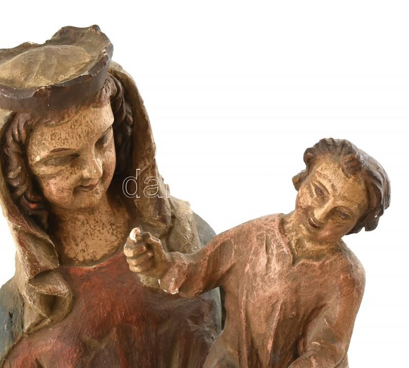 Szűz Mária Jézussal, faragott, festett fa szobor, sérülésekkel, m: 48 ... https://www.darabanth.com/de/401-Fernauktion/401.0/Kunst-Dokumente-andere-Sammelgebiete/Skulpturen-Statuetten-Plaketten~500009/Szuz-Maria-Jezussal-faragott-festett-fa-szobor-serulesekkel-m-48-cm~II2463670