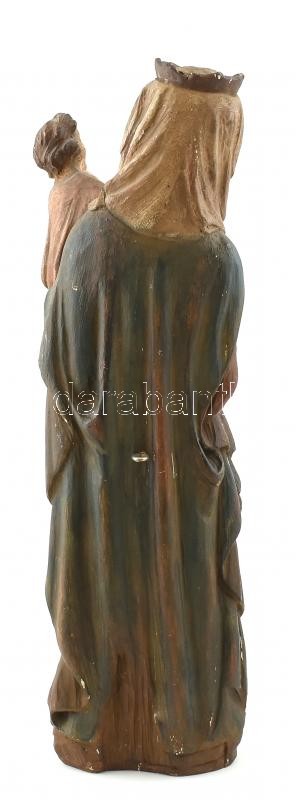 Beschreibung: Szűz Mária Jézussal, faragott, festett fa szobor, sérülésekkel, m: 48 cm