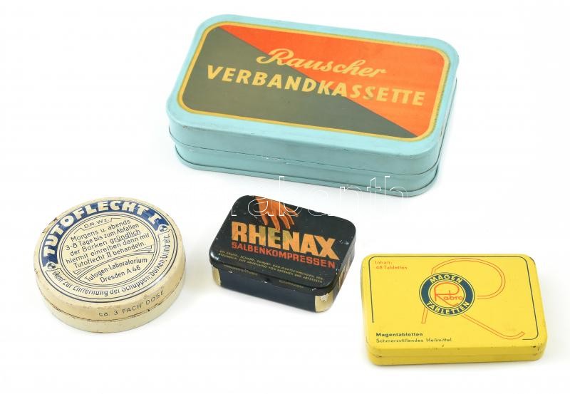 Beschreibung: 4 db fém gyógyszeres doboz a XX. sz. elejéről