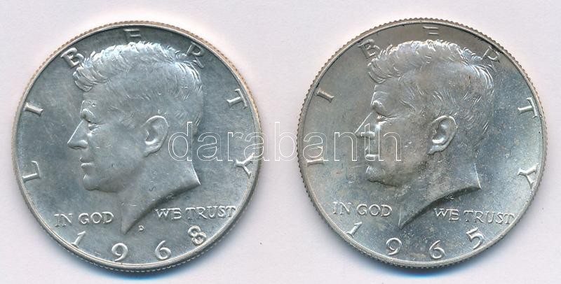 Amerikai Egyesült Államok 1965-1968D 1/2$ Ag "Kennedy" (2xklf) T:1-,2 patina