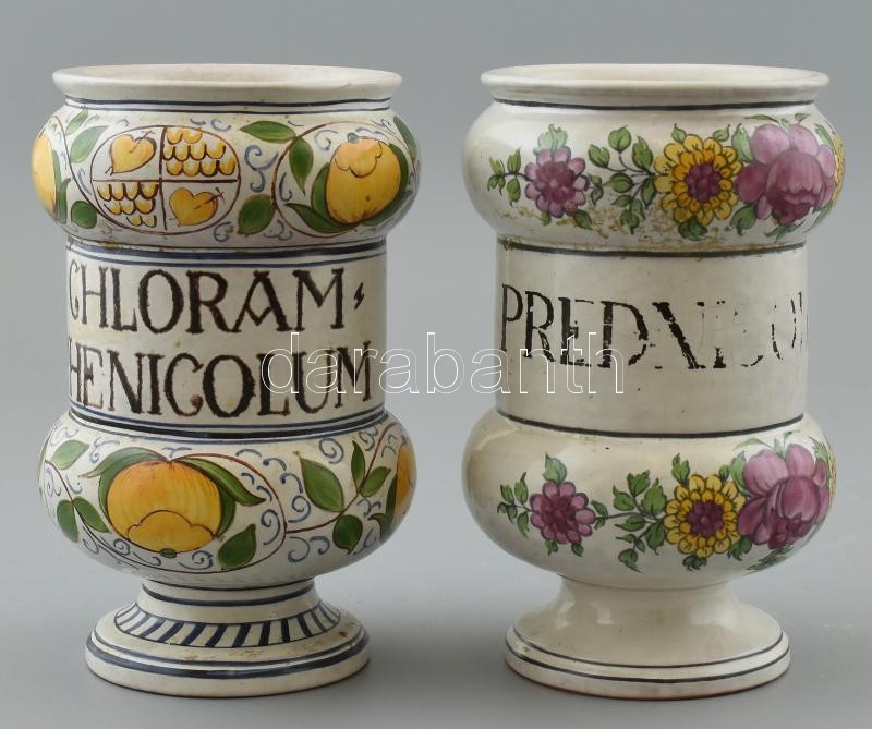 Régi patika edény 2 db, kézzel festett mázas kerámia, kopott, jelzett:... https://www.darabanth.com/de/401-Fernauktion/401.0/Porzellan-Keramik-Glass/Keramiken~500005/Regi-patika-edeny-2-db-kezzel-festett-mazas-keramia-kopott-jelzett-MEDIMPEX-BUDAPEST-VIB-m~II2459030