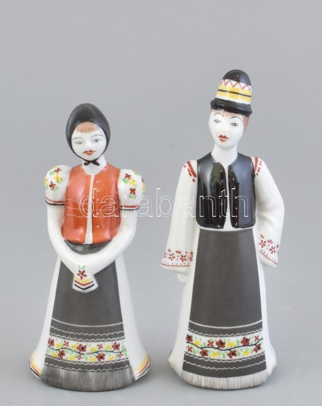 Beschreibung: Hollóházi matyó népviseletes pár. Kézzel festett, jelzett, minimális kopással 12 cm, 11 cm