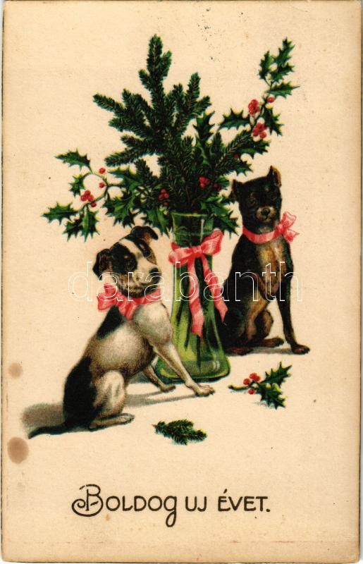 1917 Boldog Újévet! / New Year greeting art postcard with dogs. litho ... https://www.darabanth.com/de/402-Fernauktion/402.0/Ansichtskarten/GruC39Fkarten-Feste~1000102/1917-Boldog-Ujevet-New-Year-greeting-art-postcard-with-dogs-litho-fl~II2466727