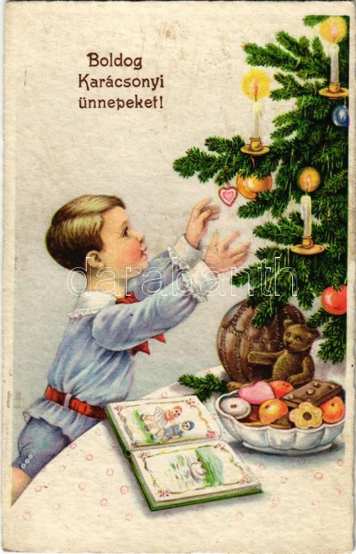 1939 Boldog Karácsonyi ünnepeket! / Christmas greeting art postcard wi... https://www.darabanth.com/de/402-Fernauktion/402.0/Ansichtskarten/GruC39Fkarten-Feste~1000102/1939-Boldog-Karacsonyi-unnepeket-Christmas-greeting-art-postcard-with-boy-toys-teddy-bear-and~II2467770
