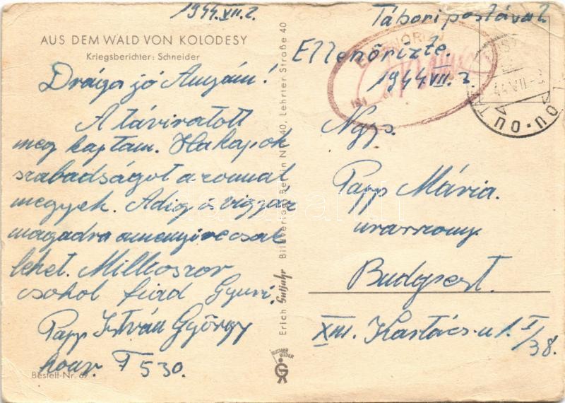 1944 Aus dem Wald von Kolodesy / WWII German military art postcard, ta... https://www.darabanth.com/de/402-Fernauktion/402.0/Ansichtskarten/Militaria~1000083/1944-Aus-dem-Wald-von-Kolodesy-WWII-German-military-art-postcard-tank-s-Schneider-EB~II2473617