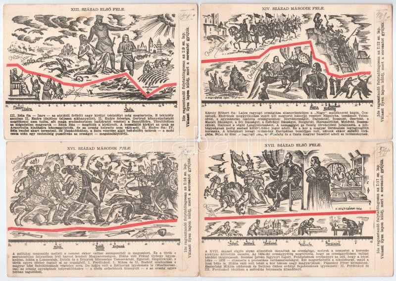 A Magyar Sors - bajtársi levelezés I. sz. (hadtörténeti) 11 darabos (hiányos) képeslapsorozata. Szerk. Kuthy Ferenc. K. Nagy Sándor rajzaival - kiadja a Magyar Nemzeti Szövetség