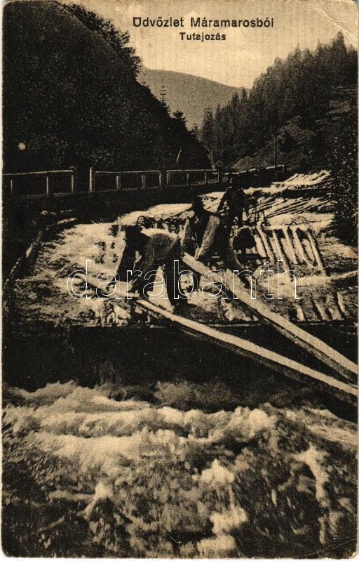 Beschreibung: 1915 Visóvölgy, Valea Viseului; tutajozás a Visóczon (Máramaros), Visó folyó. Berger Miksa utóda kiadása / rafting on the Viseu river, folklore (fa)