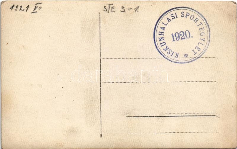 1921 Kiskunhalasi Sportegyesület focistái / Hungarian football club, p... https://www.darabanth.com/de/402-Fernauktion/402.0/Ansichtskarten/Sport~1000097/1921-Kiskunhalasi-Sportegyesulet-focistai-Hungarian-football-club-players-photo~II2467627