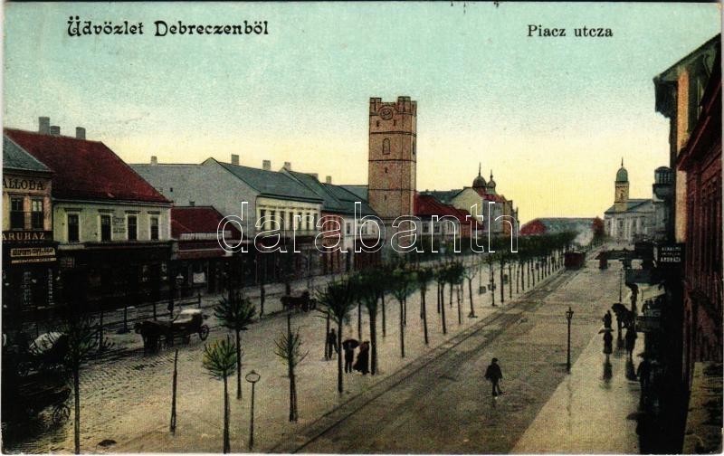 1909 Debrecen, Piac utca, szálloda, üzletek, városi vasút, kisvasút https://www.darabanth.com/de/402-Fernauktion/402.0/Ansichtskarten/Ungarn~1000005/1909-Debrecen-Piac-utca-szalloda-uzletek-varosi-vasut-kisvasut~II2467116