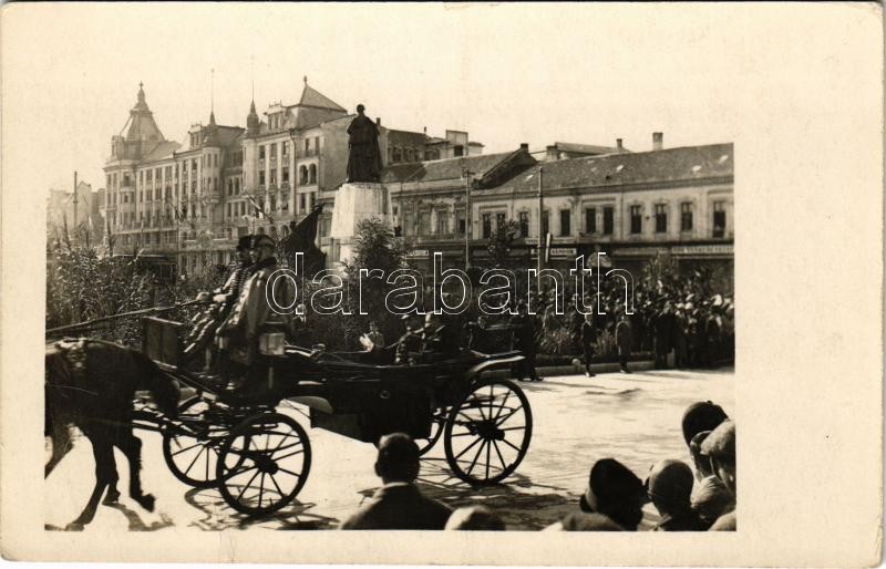 Beschreibung: 1920 Debrecen, Horthy Miklós látogatása, ötösfogatban a Kossuth téren. photo