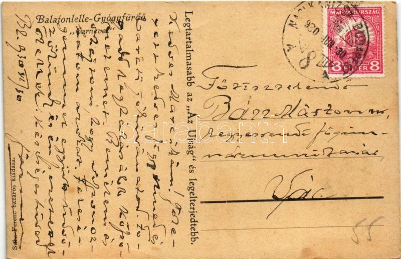 1930 Balatonlelle-gyógyfürdő, Carneval, karneváli feldíszített csónako... https://www.darabanth.com/de/402-Fernauktion/402.0/Ansichtskarten/Ungarn~1000005/1930-Balatonlelle-gyogyfurdo-Carneval-karnevali-feldiszitett-csonakok-Az-Ujsag-reklam~II2471247