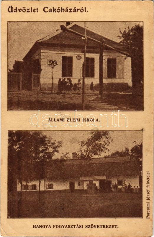 1931 Cakóháza, Állami elemi iskola, Hangya Fogyasztási Szövetkezet üzl... https://www.darabanth.com/de/402-Fernauktion/402.0/Ansichtskarten/Ungarn~1000005/1931-Cakohaza-Allami-elemi-iskola-Hangya-Fogyasztasi-Szovetkezet-uzlete-Parcsami-Jozsef-fe~II2467583