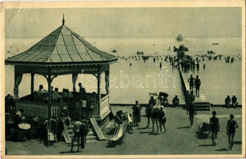 Beschreibung: 1934 Balatonalmádi, Fövenyfürdő, fürdőzők. Kálmán István kiadása (EK)