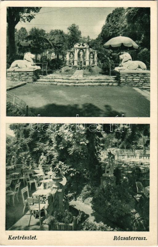 Beschreibung: Budapest II. Hűvösvölgy, Auguszt Pavillon kávéház és étterem, rózsaterasz, kert. Hidegkúti út 22.