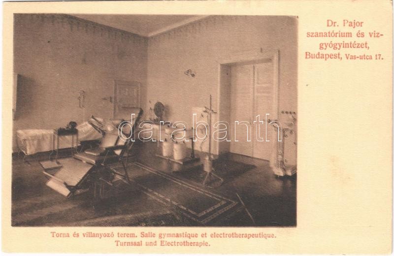 Budapest VIII. Dr. Pajor szanatórium és vízgyógyintézet, torna és vill... https://www.darabanth.com/de/402-Fernauktion/402.0/Ansichtskarten/Ungarn~1000005/Budapest-VIII-Dr-Pajor-szanatorium-es-vizgyogyintezet-torna-es-villanyozo-terem-Id-Weinw~II2474143