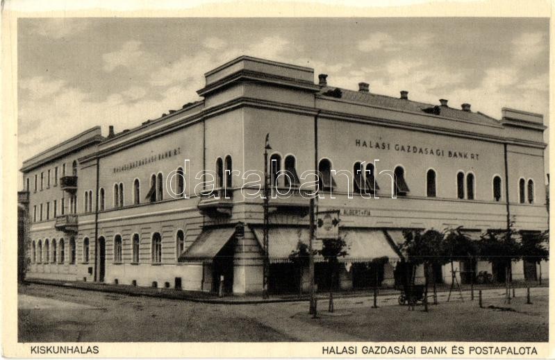 Kiskunhalas, Halasi Gazdasági Bank és Posta hivatal https://www.darabanth.com/de/402-Fernauktion/402.0/Ansichtskarten/Ungarn~1000005/Kiskunhalas-Halasi-Gazdasagi-Bank-es-Posta-hivatal~II1919746