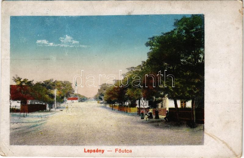 Beschreibung: Lepsény, Fő utca. Vasúti levelezőlapárusítás 4387. (kis szakadás / small tear)