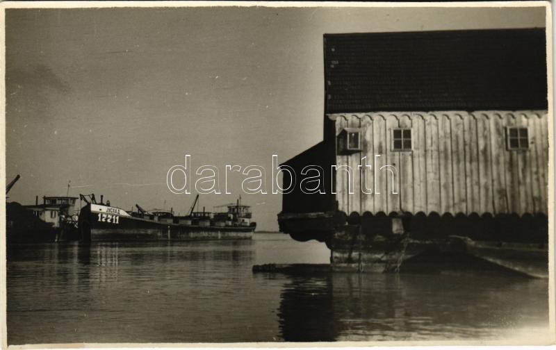 Beschreibung: Mohács, uszályok, úszó hajómalom / floating boat mill. photo