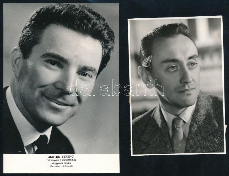 Beschreibung: Zenthe Ferenc (1920-2006) színészt és Kibédi Ervin (1924-1997) színművészt ábrázoló fotó, 2 db, 10,5×7 és 13×9 cm