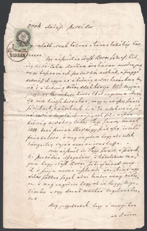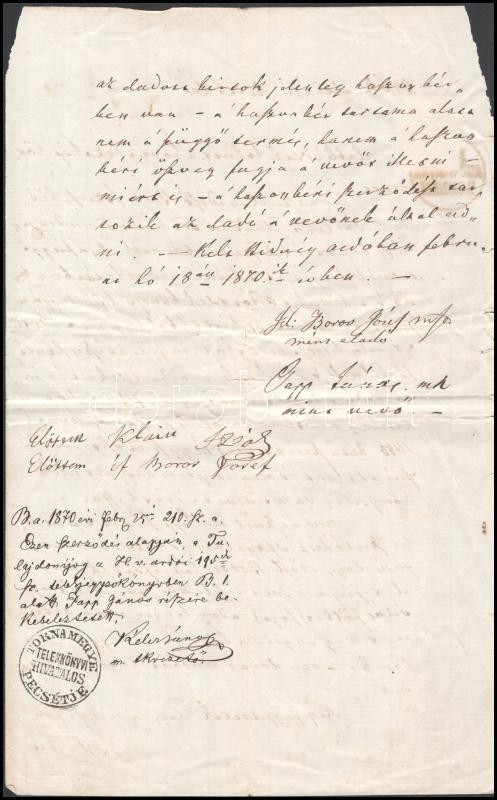 1870 Hidvégardó, adásvételi szerződés, 50 Kr okmánybélyeggel, hátoldal... https://www.darabanth.com/de/402-Fernauktion/402.0/Kunst-Dokumente-andere-Sammelgebiete/Dokument~500018/1870-Hidvegardo-adasveteli-szerzodes-50-Kr-okmanybelyeggel-hatoldalan-illetek-befizetC3~II2472326