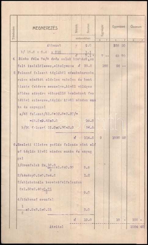 Beschreibung: 1909 Kalocsai papi szeminárium kerti házának költségjegyzéke, 11p