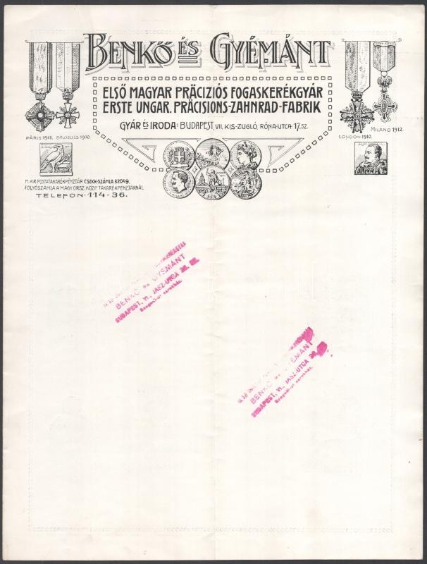 1924 Bp., Benkő és Gyémánt Első Magyar Precíziós Fogaskerékgyár fejléc... https://www.darabanth.com/de/402-Fernauktion/402.0/Kunst-Dokumente-andere-Sammelgebiete/Dokument~500018/1924-Bp-Benko-es-Gyemant-Elso-Magyar-Precizios-Fogaskerekgyar-fejleces-szamla-es-prosp~II2473074