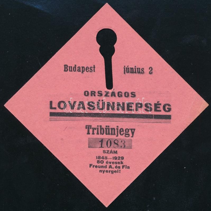 1929 Számozott tribünjegy az Országos Lovasünnepségre, hátoldalán rekl... https://www.darabanth.com/de/402-Fernauktion/402.0/Kunst-Dokumente-andere-Sammelgebiete/Dokument~500018/1929-Szamozott-tribunjegy-az-Orszagos-Lovasunnepsegre-hatoldalan-reklammal~II2469813