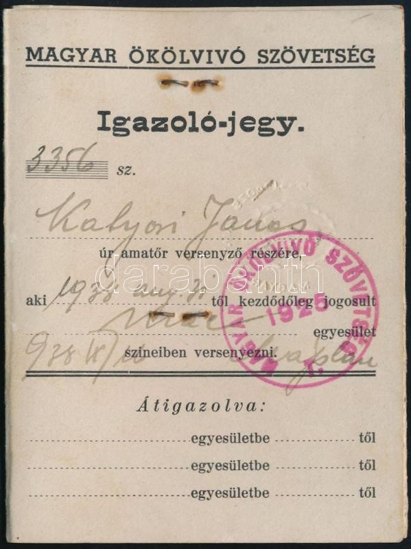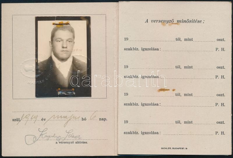 1938 Magyar Ökölvívó Szövetség fényképes igazoló jegye https://www.darabanth.com/de/402-Fernauktion/402.0/Kunst-Dokumente-andere-Sammelgebiete/Dokument~500018/1938-Magyar-Okolvivo-Szovetseg-fenykepes-igazolo-jegye~II2470011
