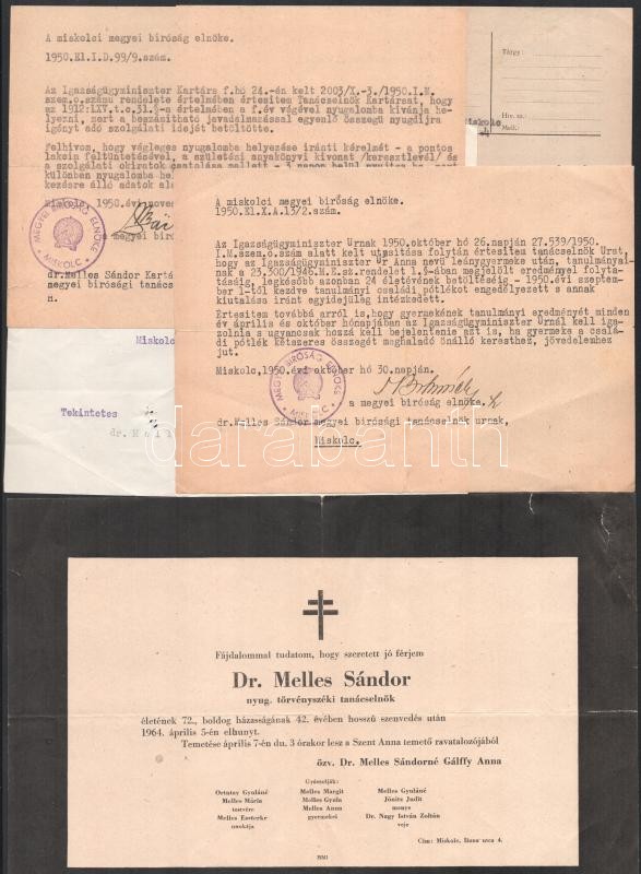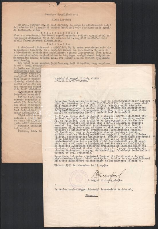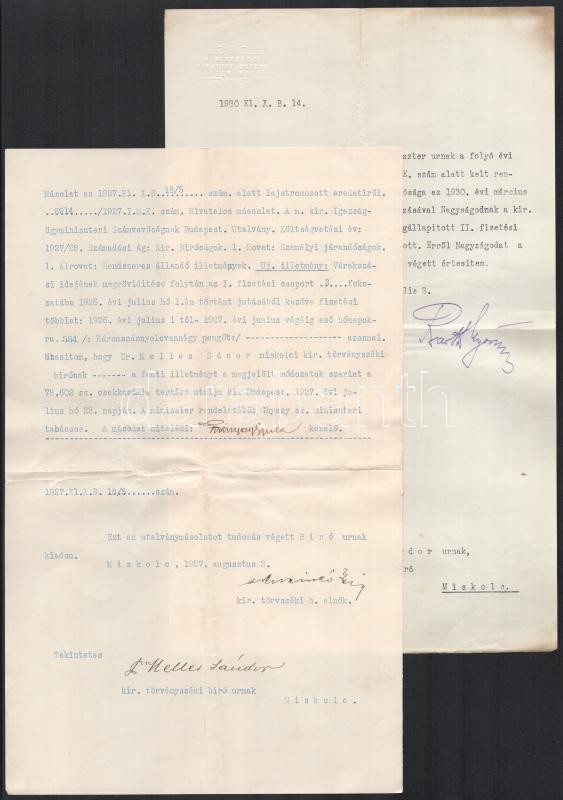 cca 1930-1960 Miskolc, törvényszéki bíró vegyes iratai https://www.darabanth.com/de/402-Fernauktion/402.0/Kunst-Dokumente-andere-Sammelgebiete/Dokument~500018/cca-1930-1960-Miskolc-torvenyszeki-biro-vegyes-iratai~II2469426