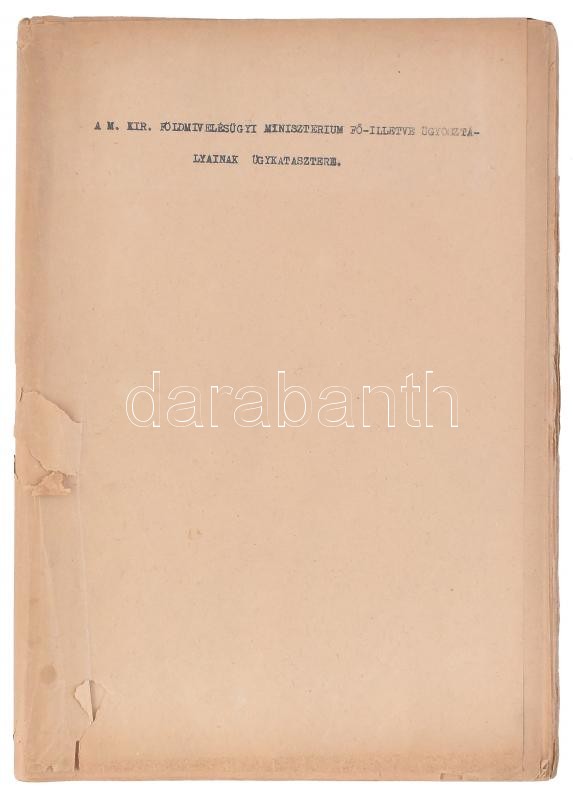 cca 1943 M. Kir. Földművelésügyi Minisztérium Fő- illetve Ügyosztályai... https://www.darabanth.com/de/402-Fernauktion/402.0/Kunst-Dokumente-andere-Sammelgebiete/Dokument~500018/cca-1943-M-Kir-Foldmuvelesugyi-Miniszterium-Fo-illetve-Ugyosztalyainak-ugykatasztere-50~II2473419