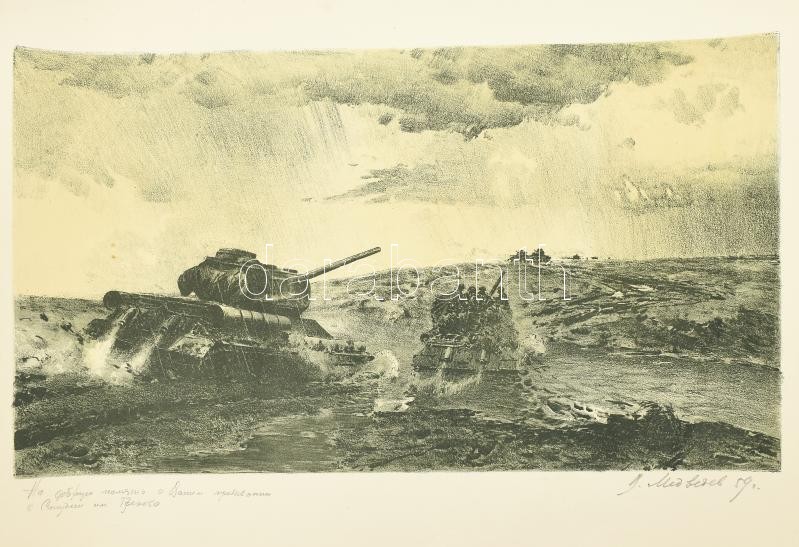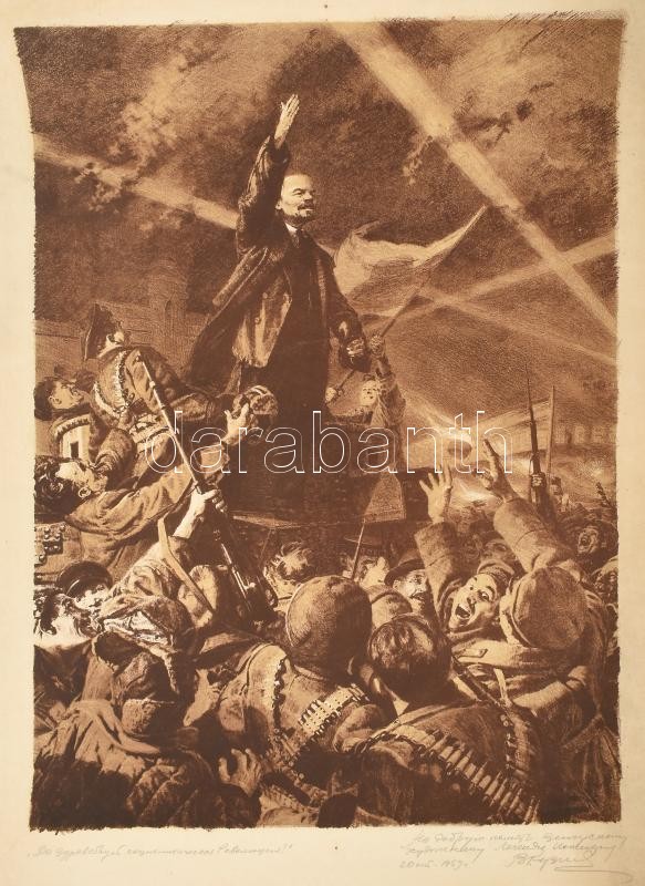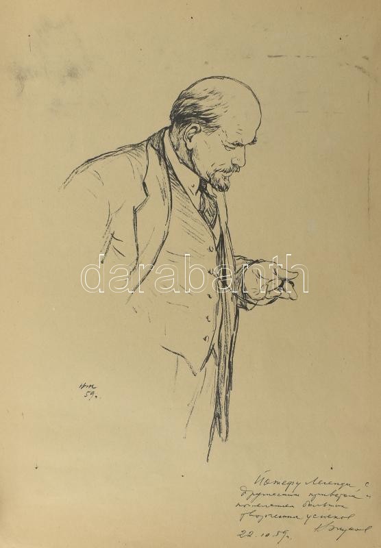 cca 1960 össz. 9 szovjet szocreál és történelmi nyomat és sokszorosított grafika, 2 db Lenint ábrázoló, klf. technikák és méretek, egyes lapok szélei sérültek, feltekerve