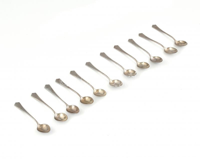 11 db alpakka mokkáskanál. Jelzett: Hacker és társa. h: 12 cm https://www.darabanth.com/de/402-Fernauktion/402.0/Kunst-Dokumente-andere-Sammelgebiete/Flohmarkt~500012/11-db-alpakka-mokkaskanal-Jelzett-Hacker-es-tarsa-h-12-cm~II2474912