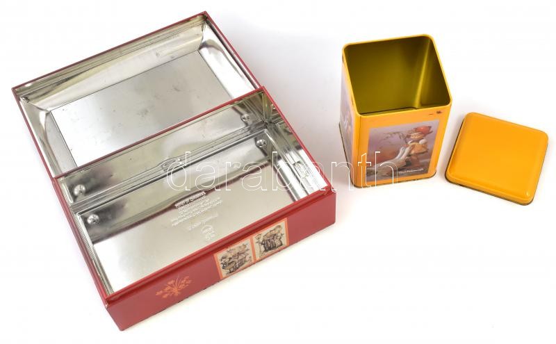 Beschreibung: 2 db Hummel gyűjtői doboz festett fém doboz 27x16 cm, 15x11 cm