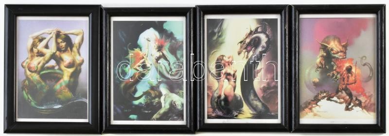 Beschreibung: 4 db fantasy női harcos képe üvegezett keretekben 9x14 cm
