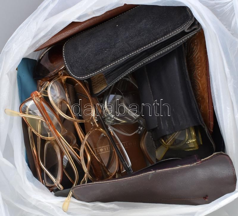 Beschreibung: Egy zsáknyi régi szemüveg és szemüveg keret