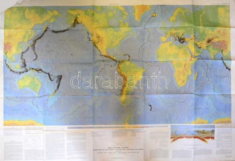 Beschreibung: 1989 This dynamic planet, world map of volcanoes, earthquakes, and plate tectonics, 1:30 000 000, két sarka leszakadt, 102,5x144 cm