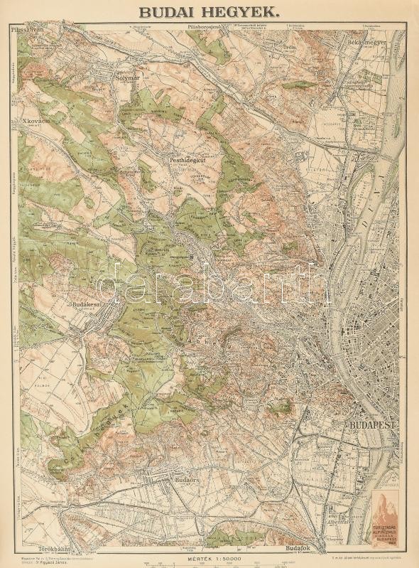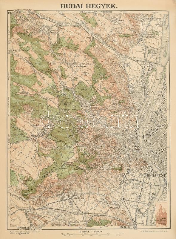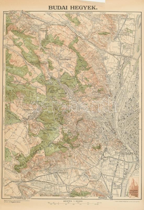 cca 1930-1940 5 db Budai hegyek térképe, terv.: Dr. Vigyázó János, 1 : 50.000, Bp., M. Kir. Állami Térképészet, kisebb sérülésekkel, 43,5x31,5 cm + 3 db A Budai hegység, 1 : 75.000, Bp., Turistaság és Alpinizmus, 25x20 cm, feltekerve