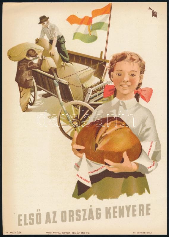 "Első az ország kenyere", Offset Nyomda, villamosplakát, 23,... https://www.darabanth.com/de/402-Fernauktion/402.0/Kunst-Dokumente-andere-Sammelgebiete/Plakat~500032/Elso-az-orszag-kenyere-Offset-Nyomda-villamosplakat-23-5C39716-5-cm~II2467908