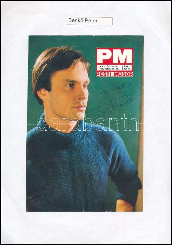Benkő Péter (1947-) színész aláírása az őt ábrázoló újságkivágáson https://www.darabanth.com/de/402-Fernauktion/402.0/Kunst-Dokumente-andere-Sammelgebiete/Signatur~500020/Benko-Peter-1947-szinesz-alairasa-az-ot-abrazolo-ujsagkivagason~II2473271