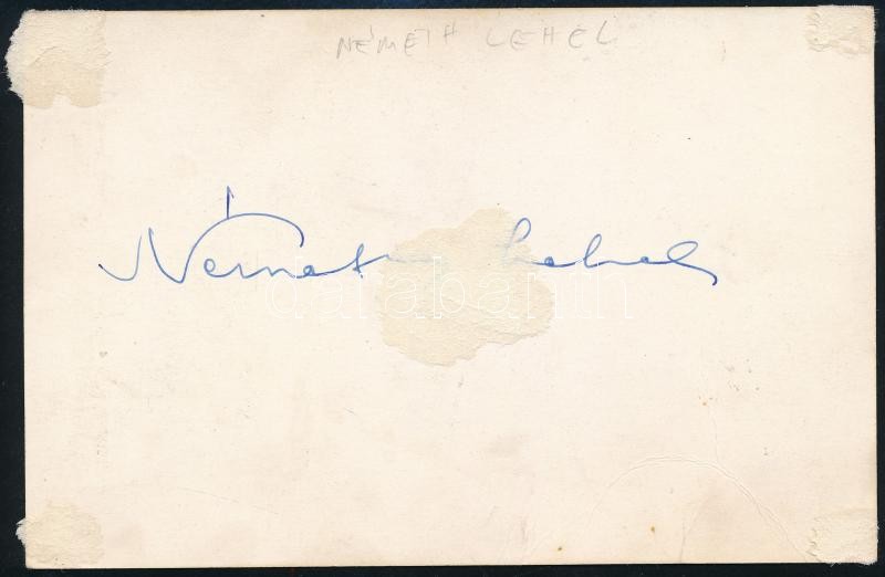Beschreibung: Németh Lehel (1932-2005) magyar táncdalénekes aláírása az őt ábrázoló fotó hátoldalán