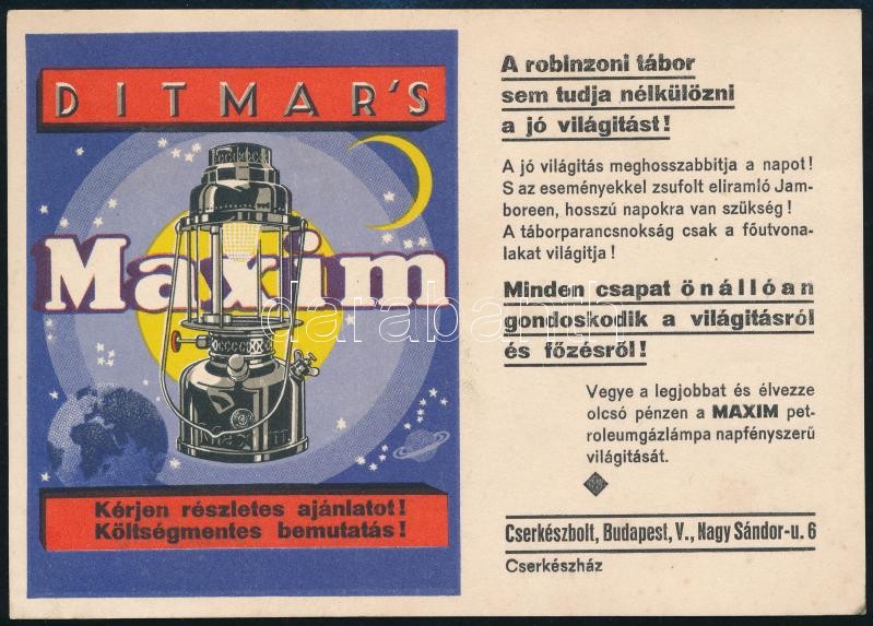 Beschreibung: Maxim petróleumlámpa reklámos levelezőlap