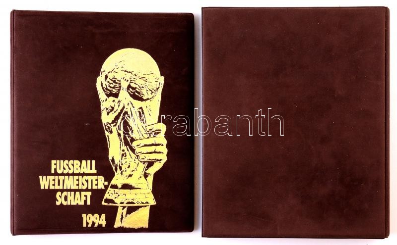 Négygyűrűs plüssborítású "Fussball Weltmeisterschaft 1994" berakó 12db kettes és egy 1db osztás nélküli berakólappal, a sorozathoz készült tanúsítvánnyal, használt, jó állapotban