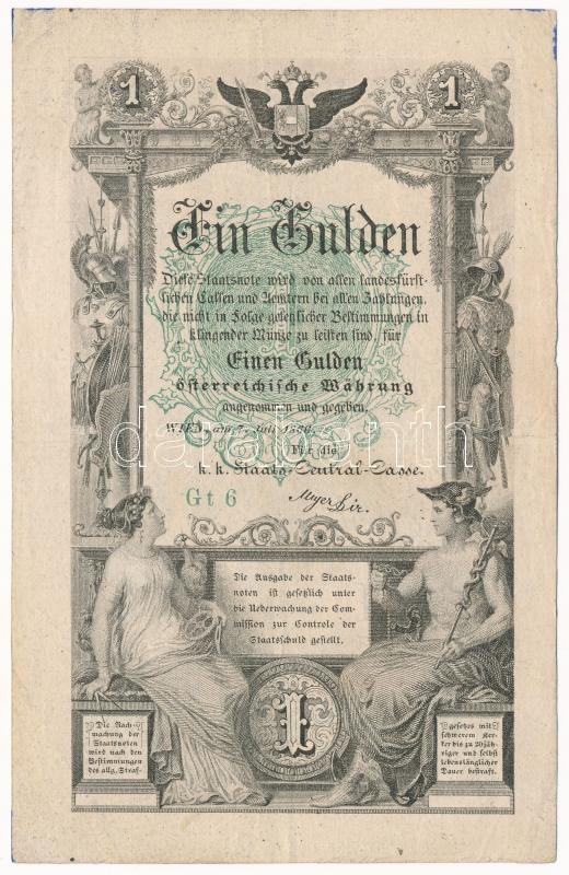 1866. 1G "STN" vízjeles papíron, "Gt6" sorszámmal ... https://www.darabanth.com/de/402-Fernauktion/402.0/Numismatik/Ungarische-Banknoten~2000007/1866-1G-STN-vizjeles-papiron-Gt6-sorszammal-TIII-szep-papir-Austrian-Empire-1866-1-Guld~II2473791
