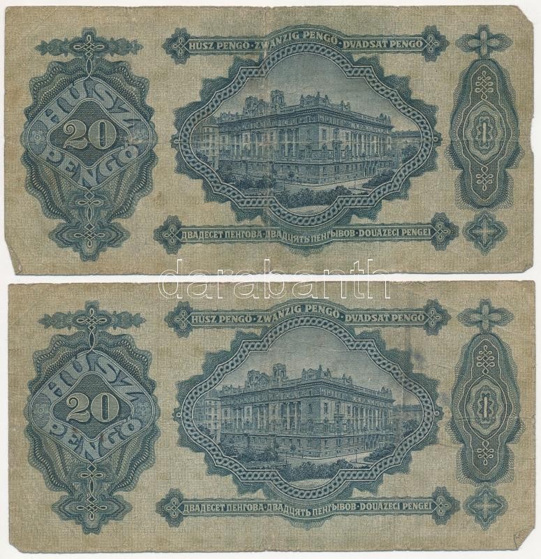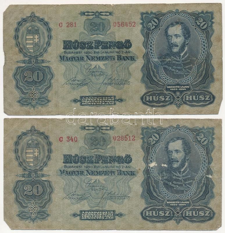 1930. 20P (2x) T:III- Adamo P11 https://www.darabanth.com/de/402-Fernauktion/402.0/Numismatik/Ungarische-Banknoten~2000007/1930-20P-2x-TIII-Adamo-P11~II2472135