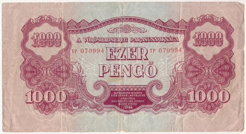 Beschreibung: 1944. 1000P "A Vörös Hadsereg Parancsnoksága" "TP 070994" T:III-