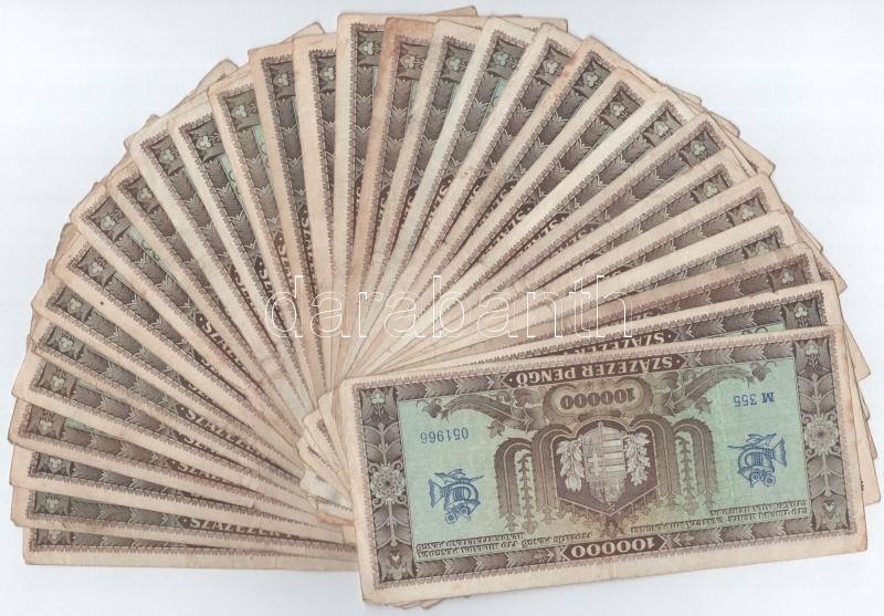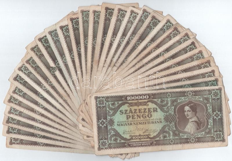 1945. 100.000P (30x) T:III,III- Adamo P24 https://www.darabanth.com/de/402-Fernauktion/402.0/Numismatik/Ungarische-Banknoten~2000007/1945-100000P-30x-TIII-III-Adamo-P24~II2475035